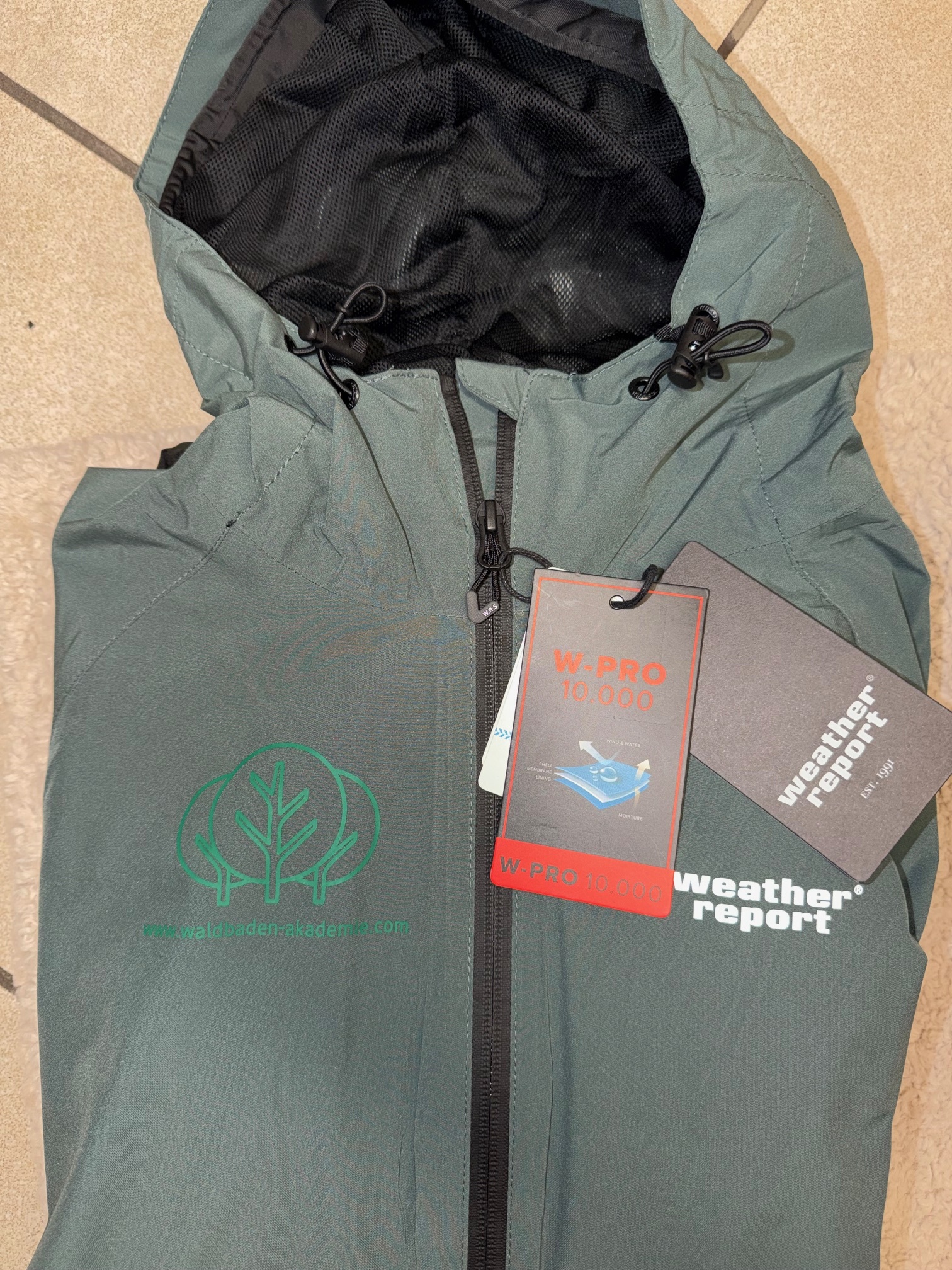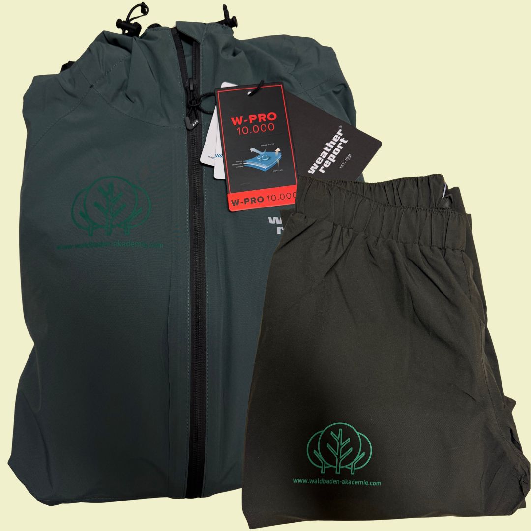 Das dezente Waldbaden Akademie Logo in Grün auf Jacke und Hose setzt einen natürlichen Akzent und unterstreicht die Verbindung zur Natur. Das leichte Material sorgt für hohen Tragekomfort und lässt sich platzsparend verstauen – ideal für unterwegs.