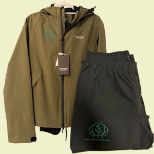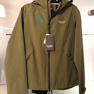 Praktisches grünes Langarmshirt mit Waldbaden-Akademie-Aufdruck auf der linken Brust.